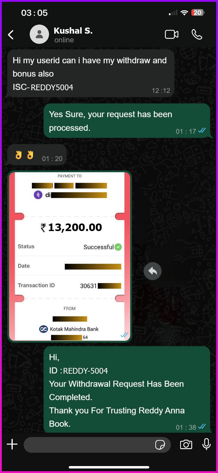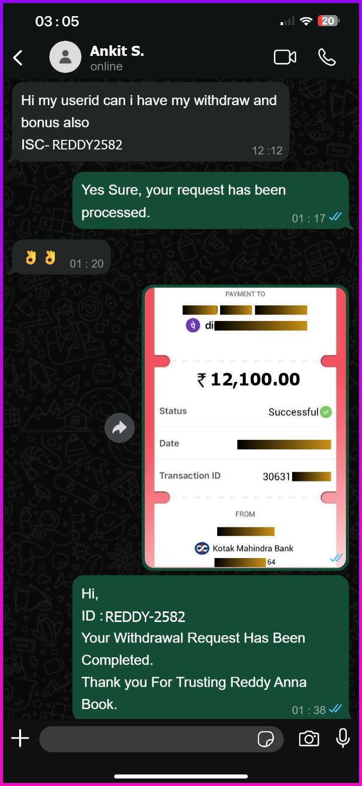 Reach us through WhatsApp, Our players love the secure and thrilling gaming experiences that Reddy Anna Book delivers to them daily. Be a part of them and get smooth gameplay, live updates, and round the clock customer support service.